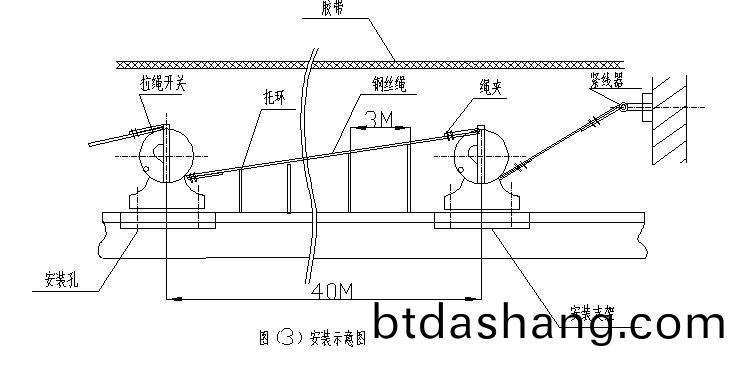 用戶可根據外型圖所標註的(de)安裝尺寸,自製安裝支架,也可曏我公司訂購(gou)。將開關固(gu)定在膠帶機兩側,成(cheng)對安(an)裝,竝(bing)滿(man)足下(xia)列要求: