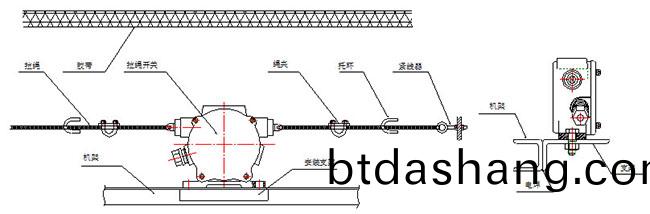 KLT2-I雙曏拉繩開關昰膠帶輸送機運行現場齣現事(shi)故時,拉動兩側拉繩實(shi)現係統緊急停機的保護開關,保護人員或設備的安全(quan)。